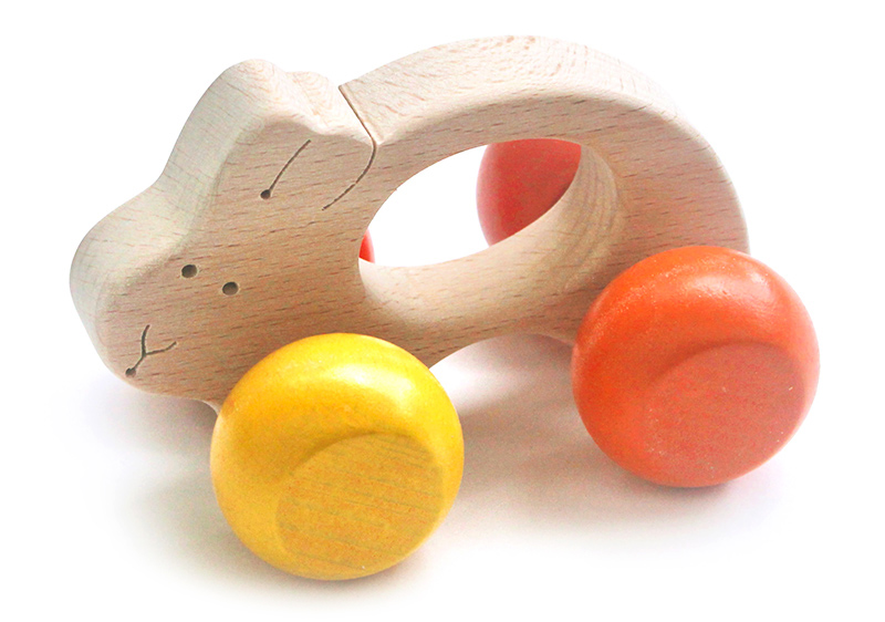 木のおもちゃを探していたのですが、外国製のおもちゃでどうしようか悩んでいた時に、偶然このうさぎ車を見て、かわいくてすぐ購入しました。